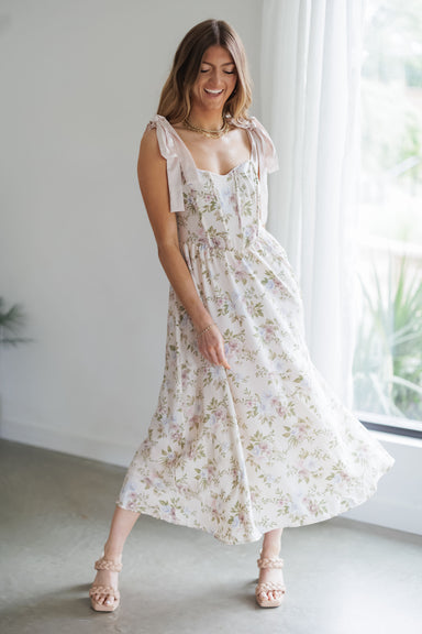 Twirl around in the "Bonnie Dress!" You can never go wrong with a feminine floral dress in the summer! This dress boasts so many adoring details th...