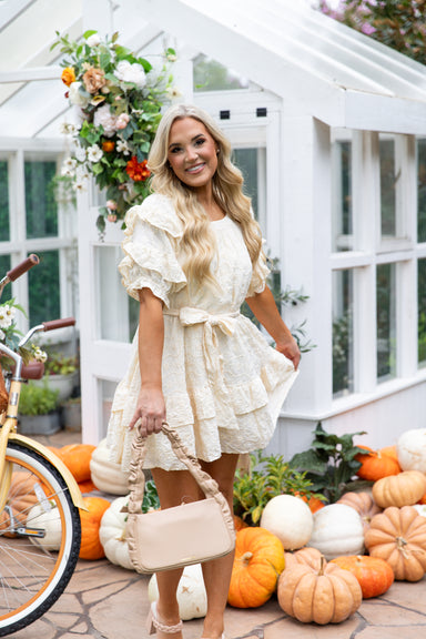 Twirl around in the "Cameron Dress!" We love the effortlessly chic fall details that this dress has to offer! It features a neutral base with daint...