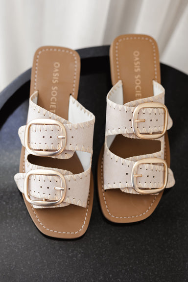 The Tivoli Sandal are the ultimate "easy-chic" essential, featuring two wide, cream-colored straps that provide both security and a sophisticated a...