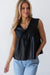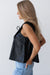 A fresh take on a classic silhouette, this faux leather top features a statement sailor collar with lace trim and front tie detail. The relaxed fit and buttery texture offer effortless styling from day to night. Perfect for styling with jeans or a skirt!