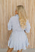 Twirl around wearing the "Bakersfield Shirt Dress!" This elevated casual mini dress is so perfect for the warm weather because of its flowy and forgiving design. The quarter length buttons that lead into a bow tie belt that effortlessly flatters. For an added feminine touch, there is a ruffled bottom trim that has such a flirty and carefree feel. Easily pairs with sandals or sneakers!