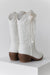 Prepare to charm in the "Lucilla Boot" in white! These boots boast southern charm with feminine flair! They feature a classic cowboy boot print with pointed toe and heel, along with a mid-calf height. The star of these boots is the white bow tied on the outside, offering a trendy and girly touch!