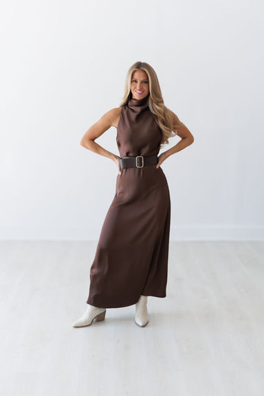 Feel your best in the "Lennox Dress" in dark brown! This chic dress is perfect for making a statement this fall season! It boasts a full maxi lengt...