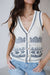The Rise With Purpose Sweater Vest  is a standout piece that blends heritage-inspired patterns with a modern, breezy silhouette. Crafted in a soft ivory knit, it features intricate geometric and Fair Isle-style motifs in a deep indigo blue across the front. The vest is finished with delicate front button closures and contrasting blue trim along the neckline and armholes, providing a structured yet relaxed look.