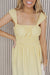 The Joy Dress, featured in a soft buttery yellow that is perfect for golden hour. This piece features a flattering square neckline and a wide smocked bodice that ensures a comfortable, flexible fit for all-day wear. The delicate cap sleeves and flowing, relaxed skirt create a romantic silhouette that captures the essence of summer ease.