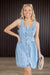 The Kelly Mini Dress captures an effortlessly cool, country-chic vibe with this light-wash denim mini dress. This piece features a flattering scoop neckline and a full-length functional button-front closure with contrasting silver hardware. Strategic vertical seaming throughout the bodice provides a structured, feminine fit that transitions into a gently flared skirt. Its sleeveless design and durable yet breathable denim make it a summer essential for everything from ranch days to casual weekend outings.