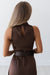 Feel your best in the "Lennox Dress" in dark brown! This chic dress is perfect for making a statement this fall season! It boasts a full maxi length, high neckline, and edgy brown belt with gold accents. The belt adds the perfect touch of flair and creates perfectly completes the look! Style with any kind of heels!