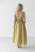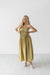 The Braylee Dress , rendered in a sophisticated chartreuse-olive tone. This piece features a meticulously pleated, strapless bodice that creates a beautiful architectural texture against the body. The structured bodice transitions into a voluminous, full-length skirt that offers an elegant, sweeping silhouette with every step.