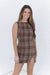 Introducing the "Bria Mini Dress!" We can't get enough of the fall vibes that this dress has to offer! Complete with a brown and burnt orange plaid print, high neckline, and sleeveless sides, this dress is sure to charm! The small slit in the leg adds just the right amount of flirty flair to the look. Pair this dress with tights and boots to complete the look!