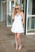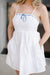The Carrie Mini Dress, crisp white tiered mini featuring delicate eyelet embroidery throughout, it’s anchored by a pop of nautical blue ribbon tied in a perfect bow at the neckline. It’s the ultimate "I have a picnic at 2:00 and a yacht party at 4:00" ensemble, complete with pockets for stashing your sunglasses or a spare hair tie. Breezy, playful, and just a little bit preppy, this dress proves that the best summer adventures always start with a great white mini.