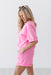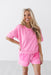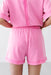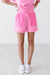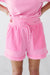 The One Step Ahead Shorts embraces the ultimate comfort without sacrificing style in these vibrant bubblegum pink shorts. Designed for a relaxed fit, they feature a thick ribbed elastic waistband with a matching adjustable drawstring for a personalized fit. The unique design is elevated by large, exposed-seam front pockets with a subtle textured finish and classic ribbed trim along the hemline. Part of a coordinated athleisure set, these shorts are the perfect choice for a bold, monochromatic off-duty look.