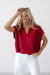The Ready Or Not Top Add features a unique split neckline with a raw-edge notched detail and capped sleeves for a contemporary, relaxed silhouette. Its chunky, breathable knit makes it a perfect transitional item for coastal breezes or cool ranch evenings. Styled here with high-waisted white trousers with vertical seam detailing, it offers a sophisticated, nautical-inspired look that remains grounded in the collection's artisanal aesthetic.