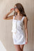 The Skyline Drift Vest is a look that exudes effortless polish and modern refinement, this structured t: wo-piece set is an absolute standout. The top features a chic square neckline and wide straps, with a clean button-down front that adds a hint of timeless tailoring. It is perfectly paired with a matching high-waisted mini skirt, creating a streamlined monochromatic silhouette. Rendered in a bright white fabric, this set is ideal for rooftop brunches or stylish city strolls.