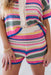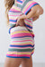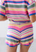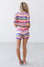The Spring Daydream Shorts bring a playful, bohemian energy to your summer edit with these multi-colored crochet shorts. Featuring a vibrant array of horizontal stripes in shades of pink, marigold, teal, and navy, these shorts are designed with a comfortable high-rise elastic waistband and a relaxed, breezy fit. The intricate open-stitch texture provides excellent breathability, making them the ultimate choice for a beach cover-up or a bold festival look.