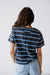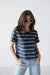 The Walk With Purpose Top offers a refined nautical aesthetic for your everyday summer rotation. Rendered in a deep midnight charcoal base, it features crisp, horizontal stripes in shades of electric blue and white. The tee is designed with a comfortable crew neckline and a relaxed, slightly boxy fit that pairs effortlessly with light-wash denim.