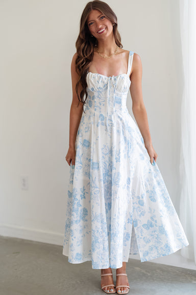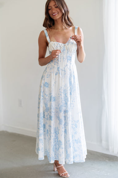 This Madison dress is covered in delicate blue floral embroidery, it’s the perfect choice for looking like a refined cottagecore icon while secre...