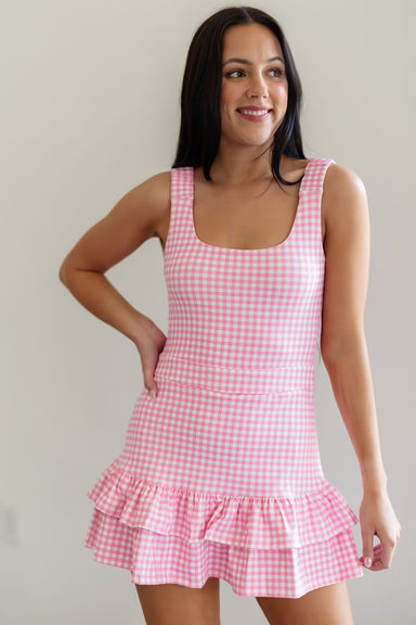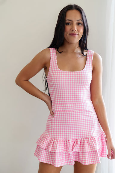 Bring a touch of preppy charm to your downtime with these delightful pink and white gingham shorts. Featuring a comfortable smocked elastic waistba...