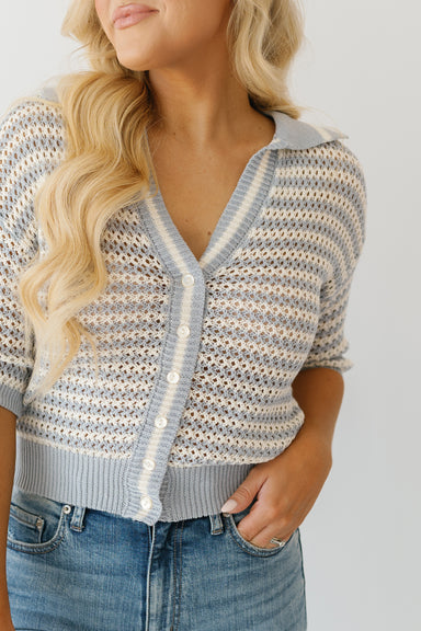 The Rise And Move Top is the ultimate "I’m on vacation" mindset in shirt form, featuring classic horizontal white stripes against a deep navy backd...