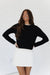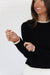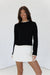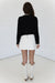 This structured sweater top combines luxurious softness with polished sophistication, featuring a sleek black base accented by crisp white trim for elevated contrast. The fitted silhouette delivers a refined, put-together look that transitions effortlessly from casual to dressy occasions.
