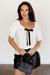 Introducing the “Open To Wonder Top!” Feminine, stylish, and timeless are three words we would use to describe this white staple top! It boasts the most adoring details that makes it such a go to for any occasion! Its lightweight and airy fabric offers a comfortable and flattering fit, while the black bow adds the perfect feminine touch. Also boasts a wide v-neckline with short puffed sleeves!