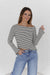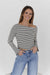Introducing the "Slow Moments Top!" You can never go wrong with a neutral staple piece to add to your wardrobe! Featuring black and white stripes throughout, long sleeves, and a comfortable ribbed fabric. The asymmetrical waistline adds an extra touch of flair to this everyday style!