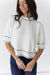 Stay cozy in the "Winter Wish Top!" This simple yet timeless sweater top is the perfect everyday staple! It features an off white knit fabric, ribbed crew neckline, and quarter length sleeves. The navy stitching along the neckline, sleeves, and waistline, add the perfect hint of winter charm!