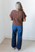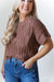 This rich, chocolatey brown knit sweater top is here to revolutionize your transitional wardrobe, proving that cable knit isn't just for cold shoulders! The beautiful open weave cable knit pattern creates a classic texture, while the short sleeve keep it light and breezy for warm days. Its subtly cropped length makes it perfect for pairing with high-waisted jeans, giving you an instantly chic, put-together look. It's the perfect piece to grab when you want the comfort of a sweater but need the style of a statement top.