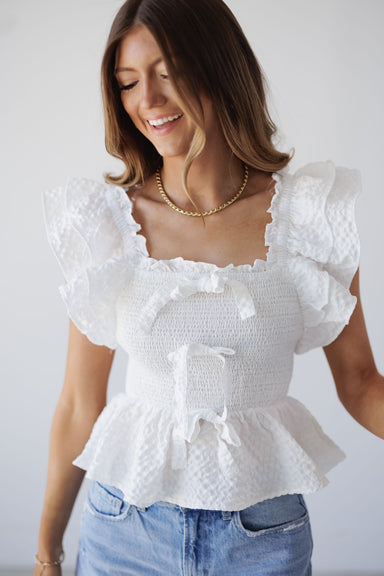 Stay chic in the "Wrapped With Love Top!" This white top is so simplistic yet elevated for the summertime! It features a slightly cropped length an...