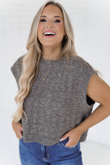 Wrap yourself in this warm hued chocolatey sweater vest, crafted with soft fabric that delivers warmth without bulk. The refined small square textu...