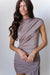 This asymmetrical draped mini dress is made to steal the spotlight with its luxe, silky stretch fabric that hugs in all the right places. The gathered detailing across the bodice creates a sculpted, effortlessly chic silhouette, while the dramatic cascading side panel adds that “I just walked off the red carpet” energy. Soft, neutral taupe keeps it classy, but the statement shape brings all the attitude. Perfect for nights where you want to turn heads and collect compliments nonstop.