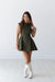 Prepare to charm in the "Mallory Mini Dress" in olive! Elevated and perfect for fall game days, this mini dress is a true head turner! It boasts the perfect fall color, sleeveless sides, and circular cinching on either side to create a flattering fit! Pair with boots for the most unforgettable ensemble!