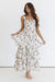 Feel your best in the "Alessia Dress!" The perfect mix of seasonal and feminine, this maxi dress will leave you looking and feeling your best! It features a white base with brown florals printed throughout. The gathered bodice and tiered ruffle skirt come together to make such a feminine silhouette. Pair with heels for the perfect date night look!