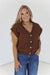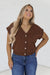 Layer effortlessly with this warm brown sweater vest, designed with a classic button-front closure and refined capped sleeves for a polished look. The rich, versatile brown tone pairs with any wardrobe staple, making it an essential piece for transitional dressing. Perfect for adding dimension and warmth to your everyday looks without the bulk of a full sweater
