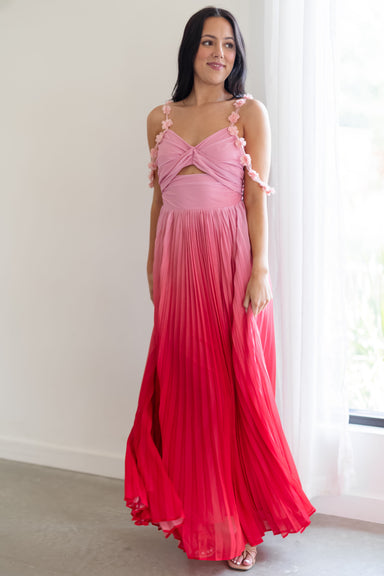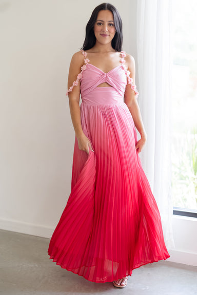 Turn heads in the "Ashton Dress!" This elevated maxi dress would be perfect for wearing to a wedding or a fancy date night. Its elegant neckline is...