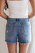 The "Oliver High Rise Shorts" are the perfect addition to your summer basics wardrobe! They feature a medium washed color, slight distressing through the hips, and cutoff frayed bottoms. Easy to style with any tank, tee, or blouse for the summer!