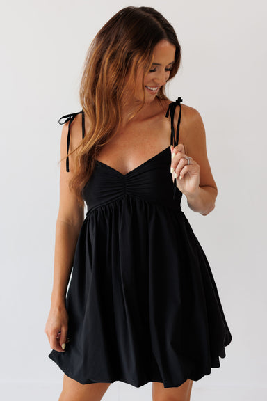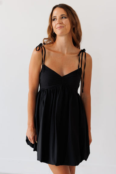 Twirl around in the "Aubrey Dress!" Chic and feminine, this dress features details that simply can't be beat! Boasting short puffed sleeves, bow de...
