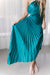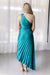 The Evelyn Dress is this stunning teal one-shoulder maxi that’s all about high-fashion drama. The intricate pleated texture and daring side cutout create a silhouette that’s both sculptural and incredibly flattering. It’s the ultimate "black-tie optional" summer look for when you want to feel like a total mermaid queen.