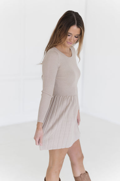 Twirl around in the "Monica Sweater Dress" in taupe! Feminine and simplistic, this mini dress is perfect for any activity this fall! It features a ...