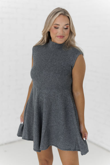 Twirl around in the "Monica Sweater Dress" in grey! Feminine and simplistic, this mini dress is perfect for any activity this fall! It features a f...