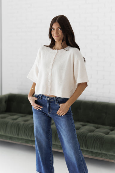 Introducing the new "Small Steps Cardigan" in ivory! We love the elevated details that this basic sweater has to offer! The simplicity of the numbe...