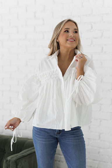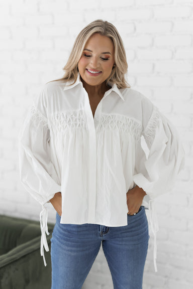 Elevate your style with the "Worth The Risk Top!" We love the unique and charming details that this top has to offer! It features all white fabric ...