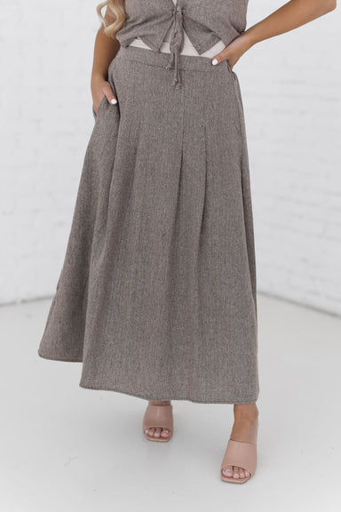 Prepare to charm in the "On Your Way Skirt!" Chic and effortless, this skirt exudes sophistication and polished vibes! It feature speckled brown fa...