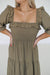 Prepare to charm in the "Adeline Dress!" A feminine and chic staple that is sure to leave you feeling confident, you can't go wrong when styling this olive maxi dress! It boasts a ruffled neckline with elastic lining, long puffed sleeves, and a fully smocked bodice. The tiered maxi skirt is effortlessly flowy and creates a stunning silhouette!