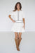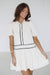 Stay playful in the "Anna Dress!" Simple and versatile, this cream dress is so easy to throw on for an elevated everyday ensemble! Boasting quarter length buttons up the front, short puffed sleeves, and black detailing along the waistline, this dress is sure to charm! Pair with any sneakers or boots!