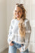 Wrap yourself in cozy charm with the Arctic Calm Sweater, a soft grey knit that brings playful personality to your everyday wardrobe. Delicate white ruffles dance along the edges, adding a whimsical touch that transforms this classic piece into something truly special. Perfect for those who love comfort without sacrificing style, this sweater is your new go-to for effortless, fun fashion.