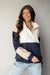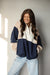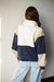 Why choose one color when you can have three? This dynamic color-block sweatshirt features a crisp white collar, creamy tan sleeves, and a deep navy base for a look that is sporty yet refined. The functional snap-neck closure allows you to adjust your cozy levels on the fly, while the ribbed hem keeps the warmth locked in. It’s the ultimate "cool-weather" essential for when you want to look strategically stylish without trying too hard.