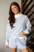 Who says you can’t look polished while staying perfectly comfortable? These light blue pinstriped lounge shorts feature a flexible, contrasting white drawstring waistband that understands your lunch choices better than your jeans ever will. Crafted with a soft, breathable texture and a subtle hem detail, they provide a breezy fit that’s ideal for transitioning from a morning nap to a midday errand. Pair them with our matching mock-neck for the full aesthetic, or wear them solo whenever you want your legs to feel like they’re on permanent vacation.