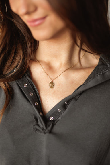 Keep a powerful reminder of strength and support right where you can see it with this elegant gold necklace. Engraved with the comforting words of ...