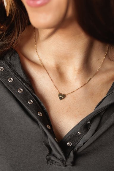 Wear your identity close to your heart with this dainty gold necklace that says it all in one powerful word. Featuring a petite heart pendant delic...