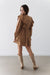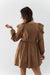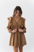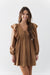 The Alexa Dress combines sophisticated style with thoughtful design details in a rich copper brown hue. This mini dress features long sleeves with charming ruffle accents at the shoulders and a delicate string tie detail across the chest, creating visual interest and dimension. A back zip closure ensures an effortless fit while maintaining the dress's polished silhouette.